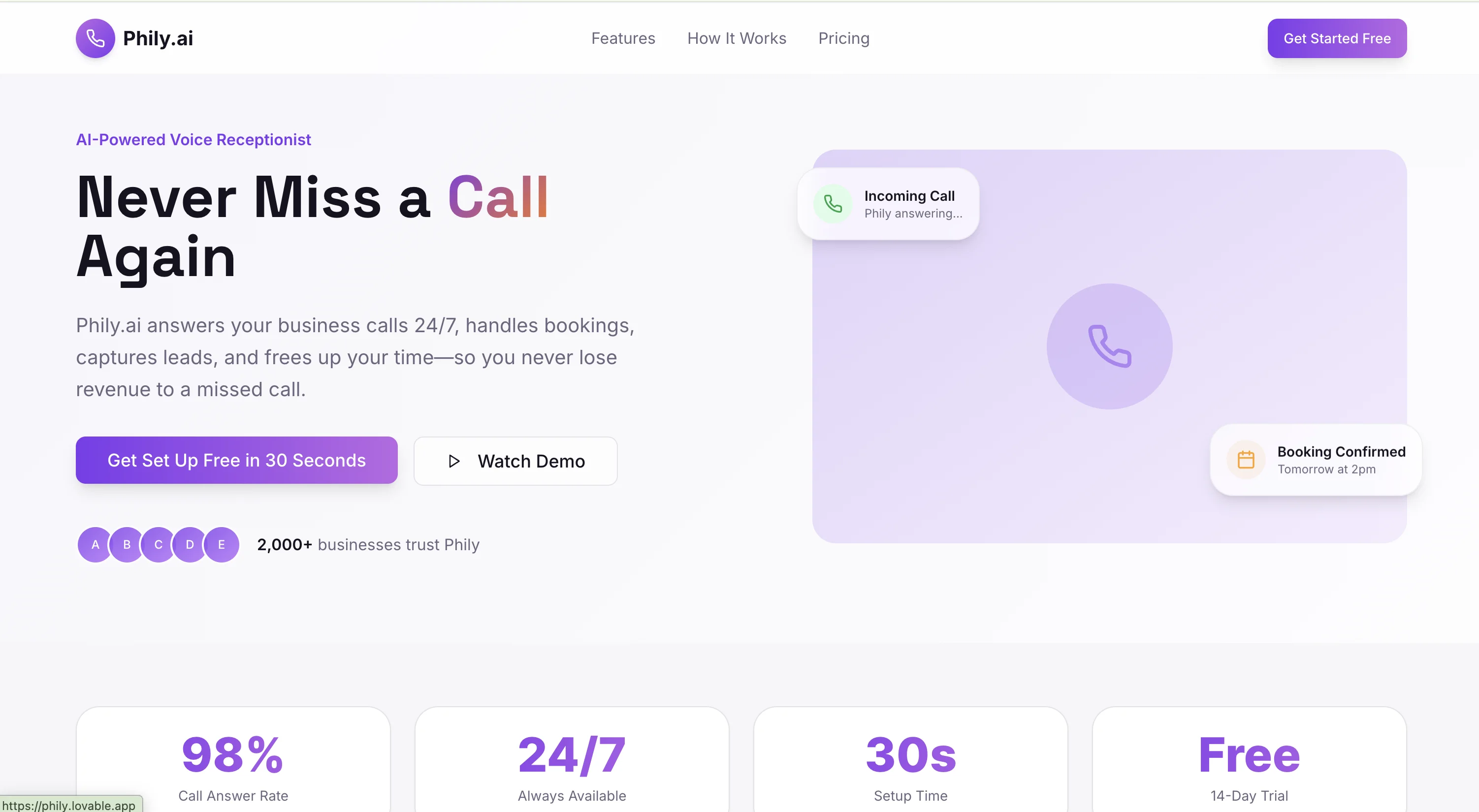 AI-powered business phone assistant that operates 24/7 to handle inbound calls, manage bookings, capture leads, and prevent revenue loss from missed opportunities. Built with advanced voice AI integration and intelligent call routing to ensure zero missed business opportunities.